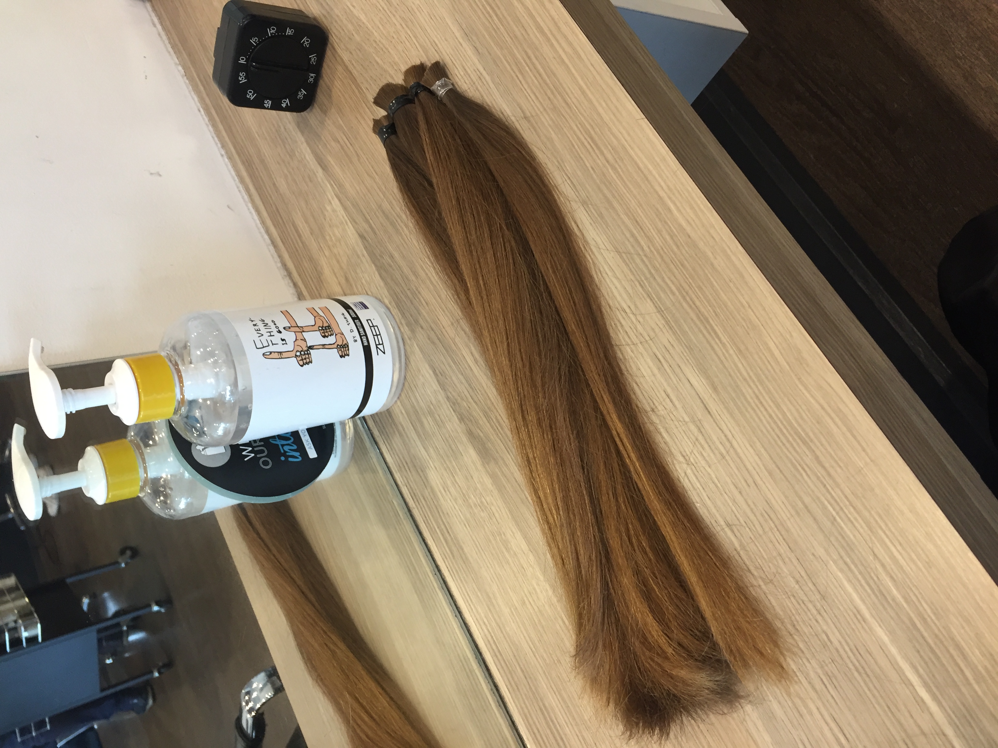 Sustainable Salons facilitate hair donations for multiple wig-makers and charity partners. These wigs are provided to people with medically induced hair loss from conditions such as Alopecia and cancer. My hairdresser informed me that my hair would most likely be made into a wig for a child with cancer.